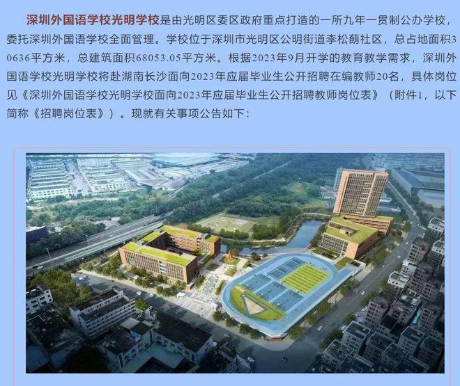 2023年8月,光明区人民政府与深外合作办学签约。2023年9月,深圳外国语学校光明学校正式开学。