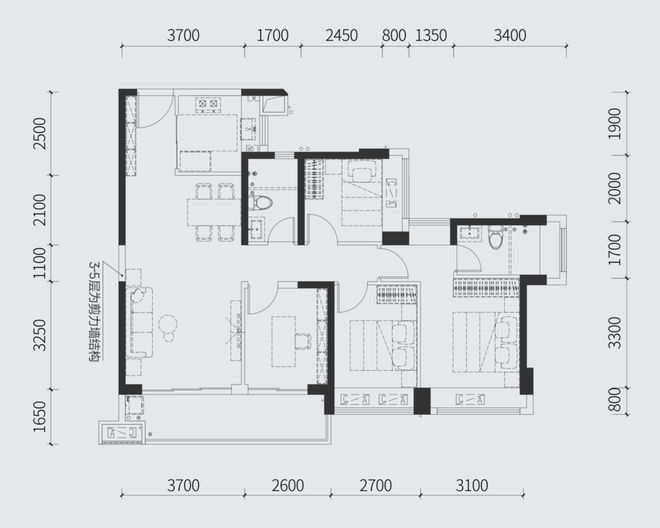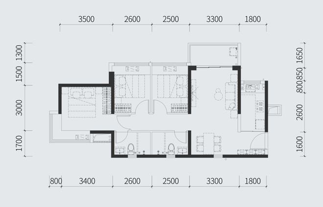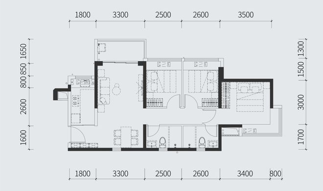 户型上在不含赠送的情况下,整体使用率都有78%,加上赠送实用率约 89%!以最小面积段的88平户型为例,区别于市面上大部分同面积产品,真正做到了三房两厅两卫。户型方正、动静分离,次卧均是整面墙宽,有良好的采光。