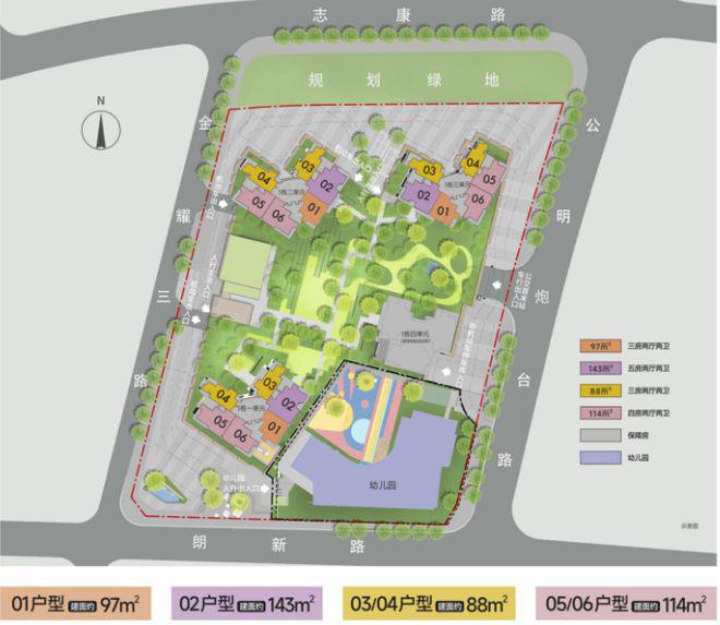 项目位于光明区公明李松萌炮台路与志康路交汇处,项目西北侧是深圳外国语光明学校,目前周边整体还是以工业园区及民房为主,13号地铁线米。