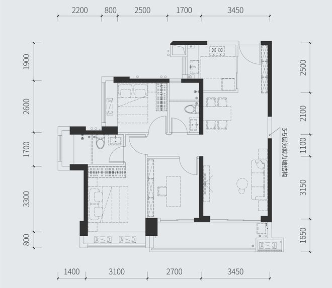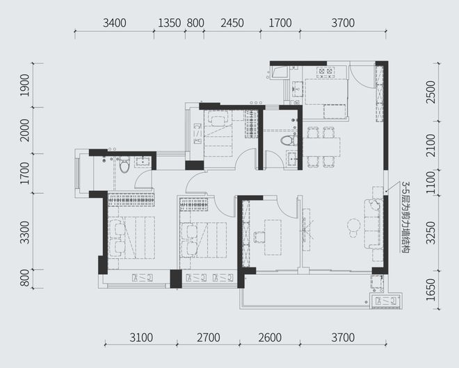 共由4栋总高25-48层住宅组成,其中1栋1/2/3单元商品房48层,1栋4单元公租房25层,配建1所12班幼儿园。